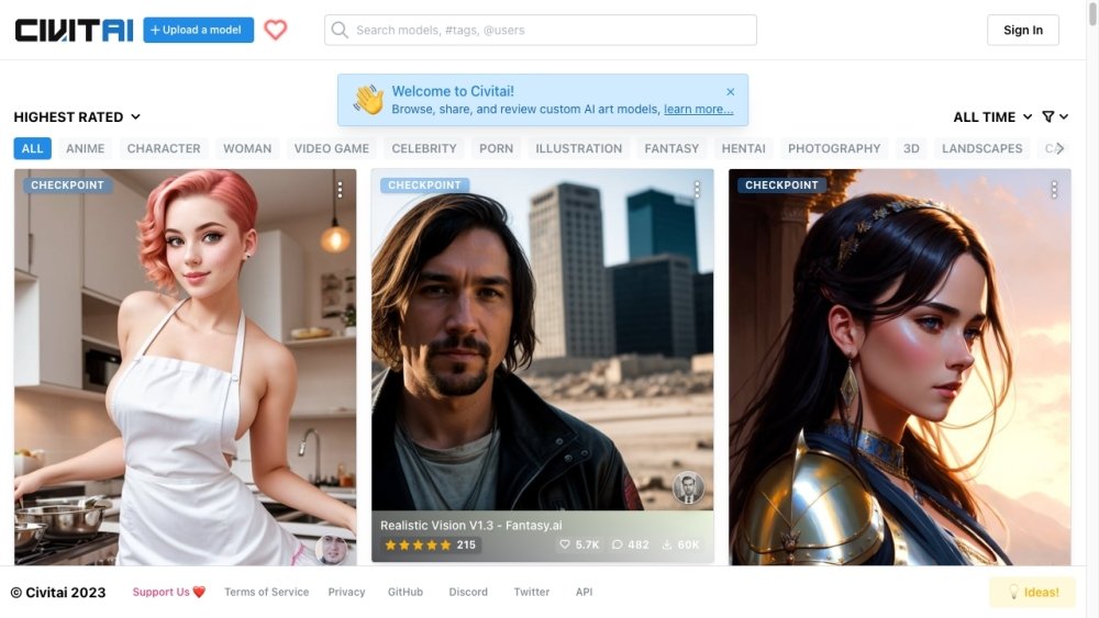 Model-sharing hub for AI art generation, specializing in Stable Diffusion.