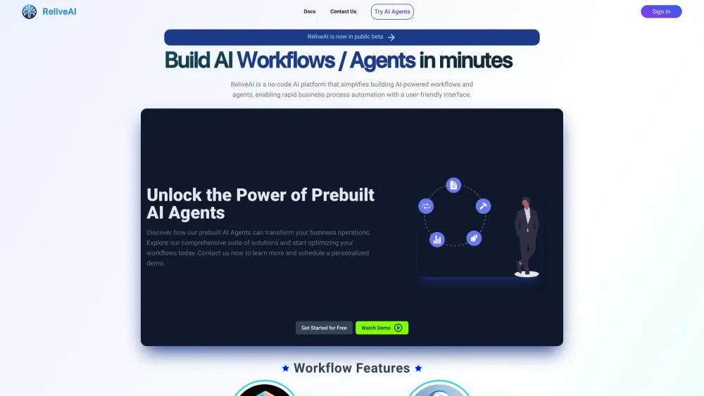 No-code AI platform for building AI-powered workflows and agents to automate business processes.