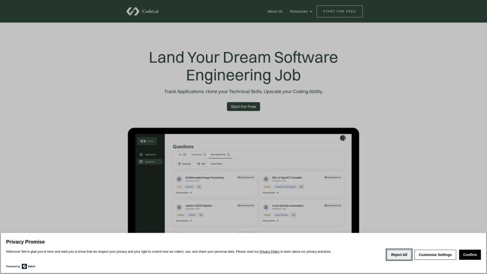 AI platform for software engineers to track applications, practice coding, and improve skills.