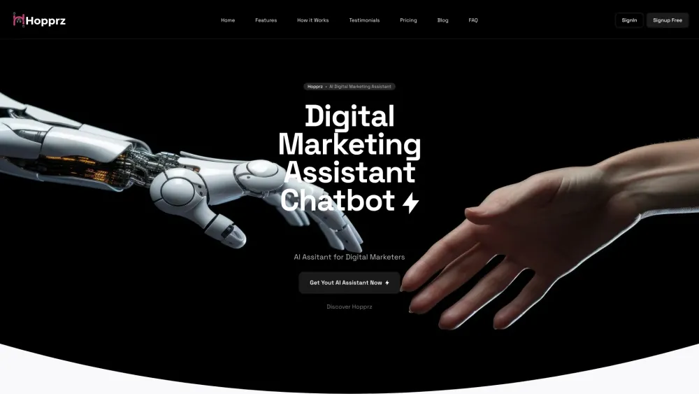 Hopprz is an AI assistant for digital marketers with various AI-powered features.
