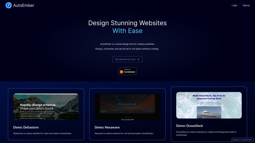 AutoEmber is a no-code website builder with visual design tools and custom domain subscriptions.
