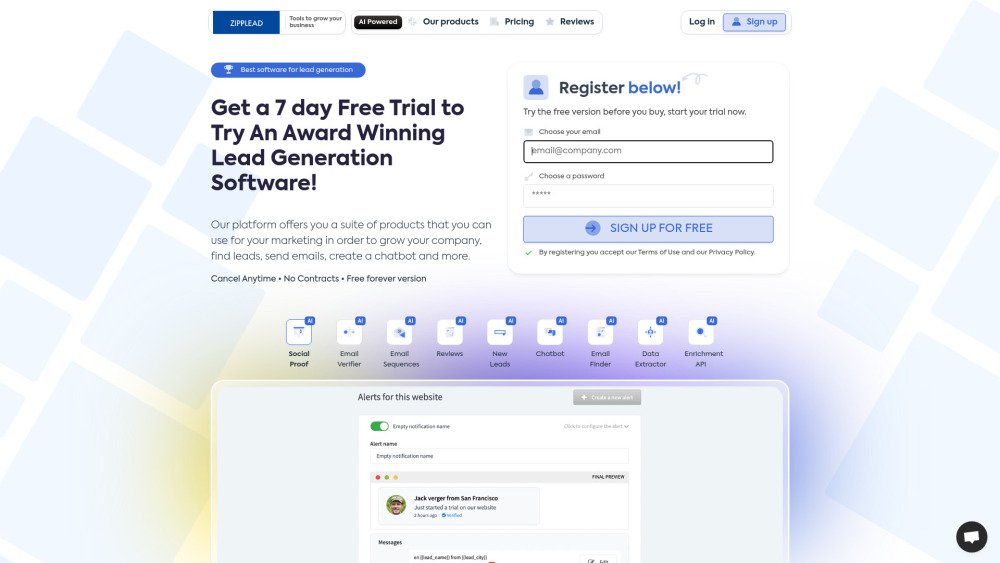 AI-powered marketing and lead generation platform with various tools for business growth.