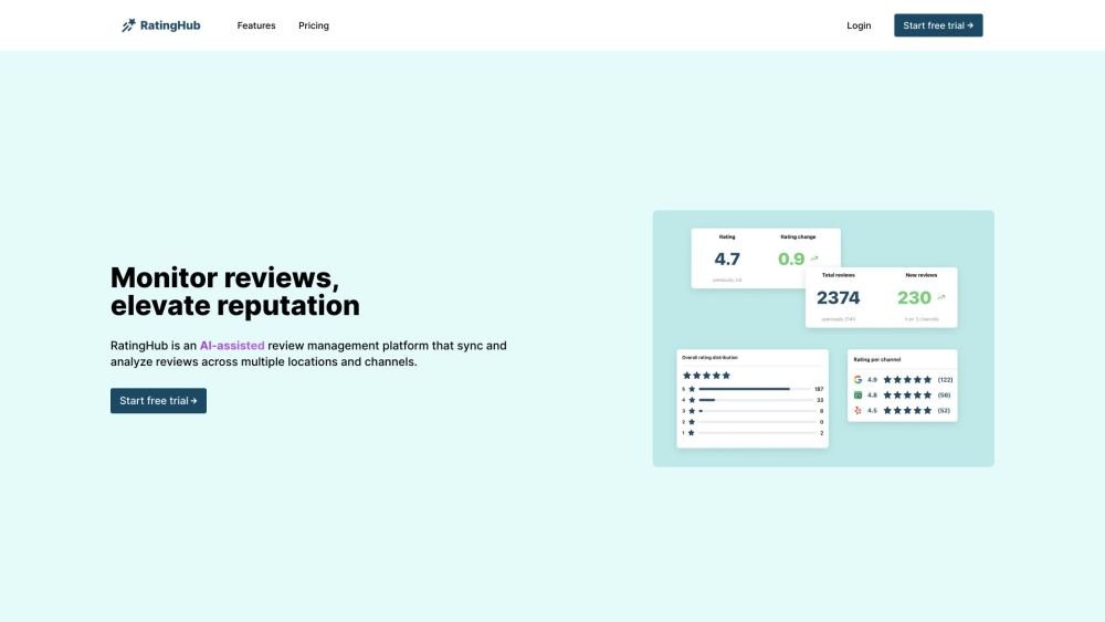 - Free trial / AI-assisted review management / Multi-channel review sync & analysis / AI response writer & weekly digest - From $25/month