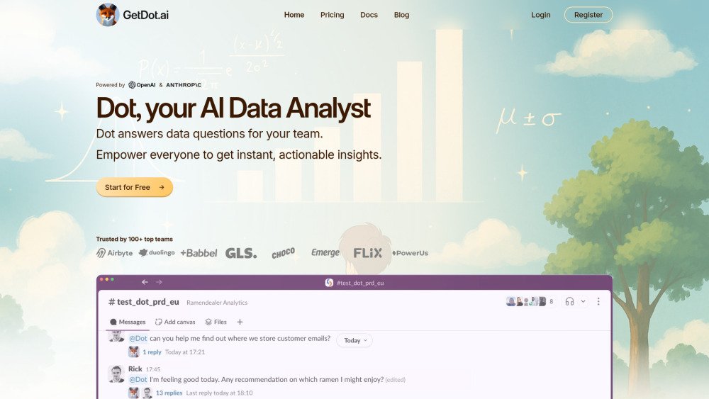 - Start for Free / AI Data Analyst that answers data questions / Instant, actionable insights