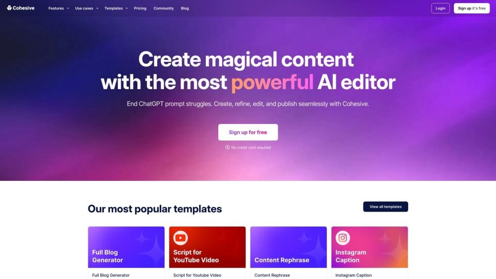 - Free / End ChatGPT prompt struggles / Seamless content creation & editing / Powerful AI editor